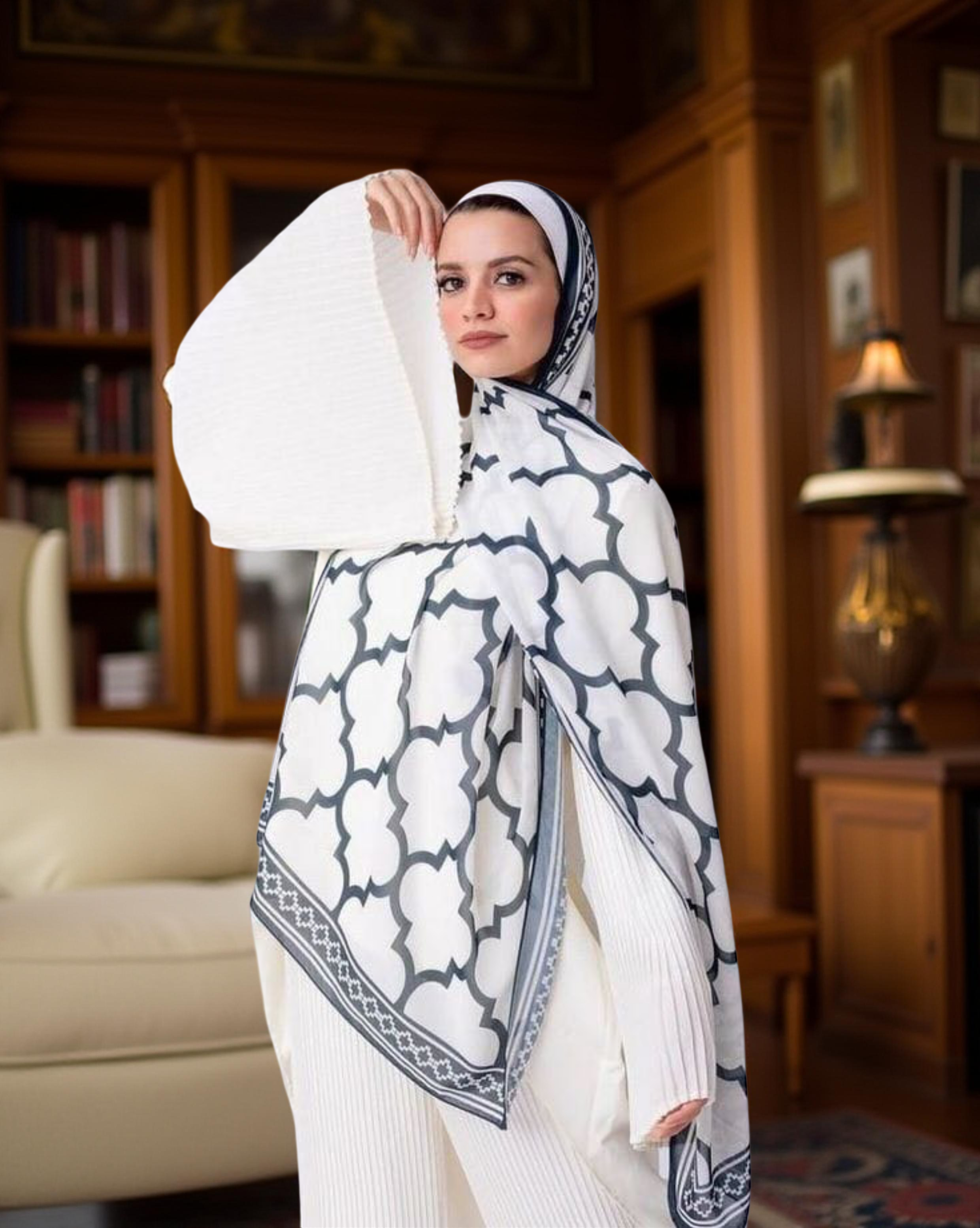 Andalusian Tile Print Silk Hijab – Luxe Heritage