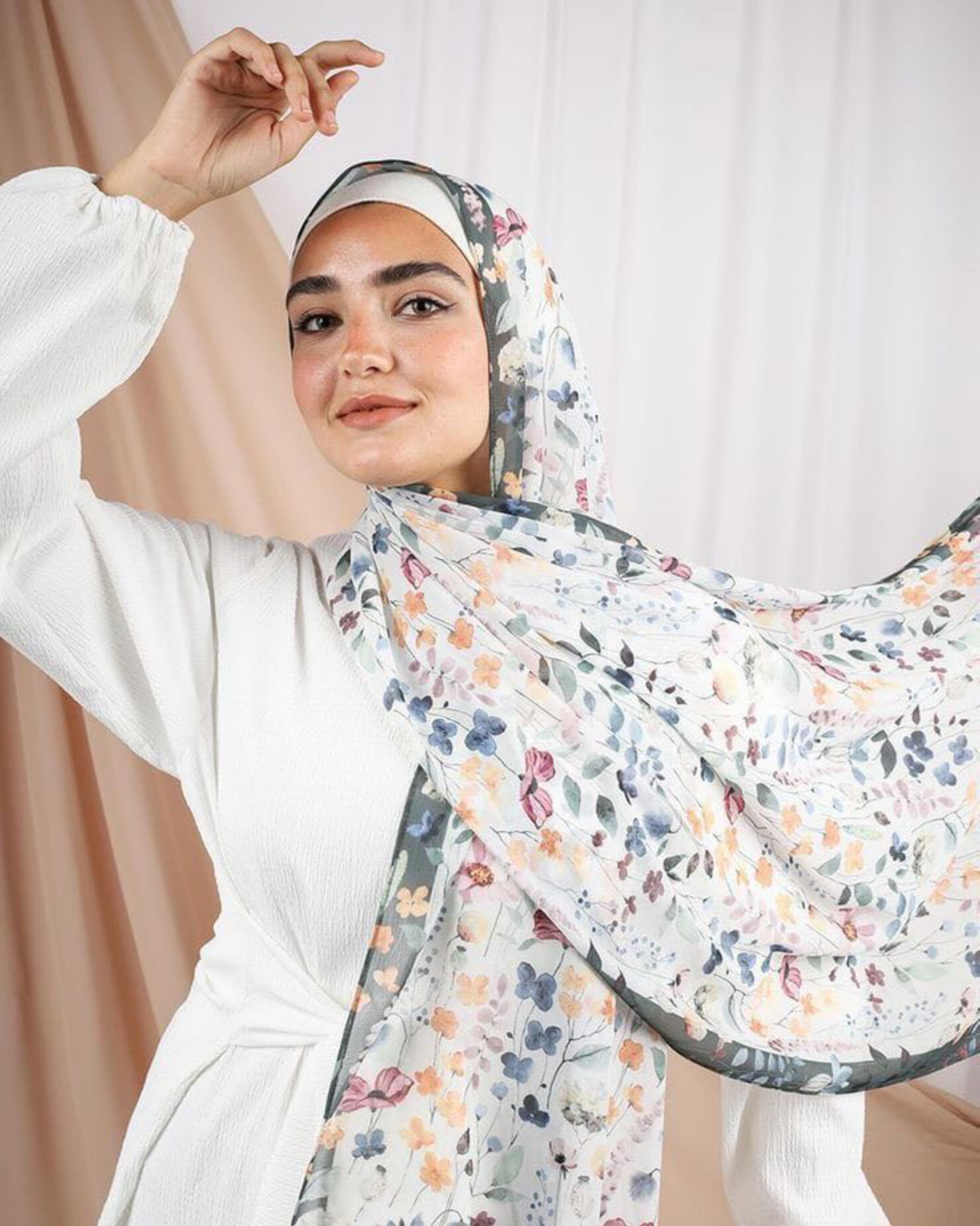 Meadow Bloom Chiffon Hijab – Soft Botanical Elegance