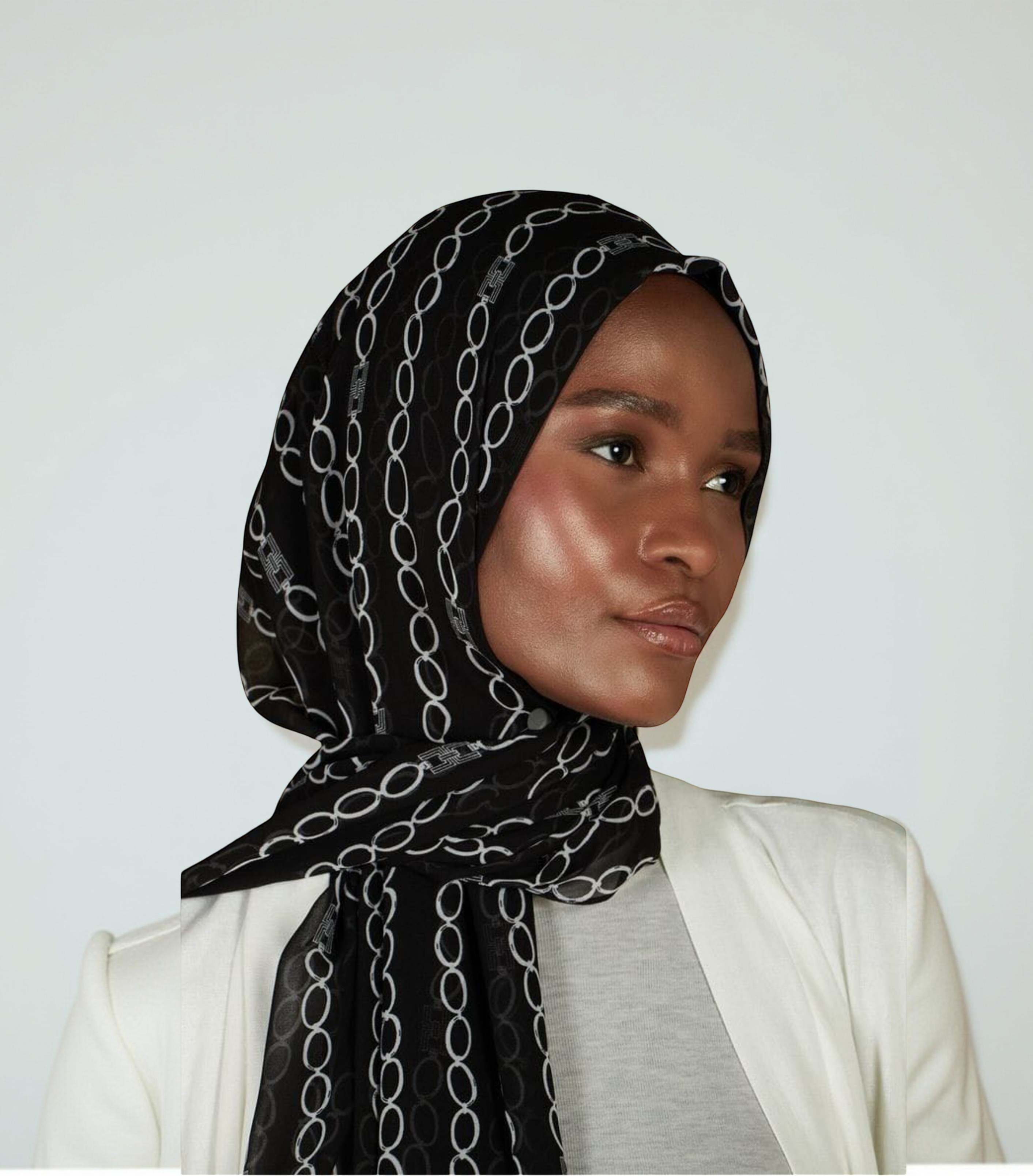 Opulence Orbit Satin Scarf – Luxe Chain-Link Elegance